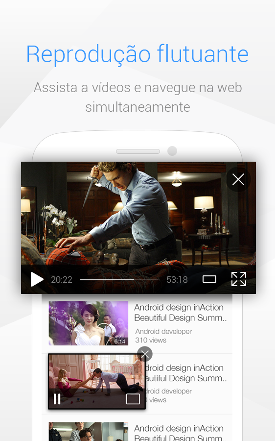5. Reprodução de vídeo: reprodução exclusiva de modo flutuante para assistir a vídeos e navegar na Web
