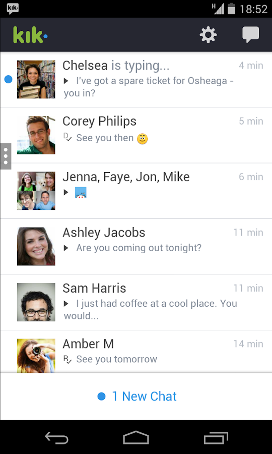 CONVERSAR COM: Kik é muito mais do que um programa de mensagem instantânea, é como se você estivesse conversando com alguém de verdade. Você sabe quando suas mensagens são entregues, lidas e quando a outra pessoa está digitando uma resposta.