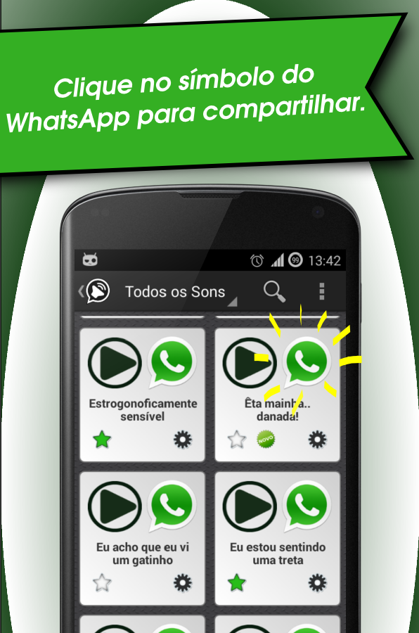 ✪ Virou notícia no R7: http://noticias.r7.com/tecnologia-e-ciencia/aplicativo-fornece-mais-de-200-audios-para-compartilhar-no-whatsapp-28032014